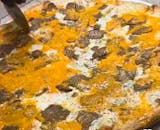 This pizza features tender chicken, sautéed mushrooms, and a rich Marsala wine reduction sauce atop a crisp, golden crust. Topped with melted mozzarella and a sprinkle of fresh herbs, every bite delivers the perfect balance of savory, earthy, and indulgent flavors. A true culinary delight for pizza lovers!